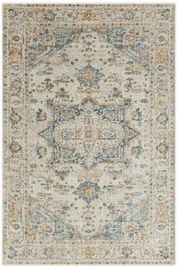 The Mohawk Home Hartley Area Rug features an ornamental medallion motif with subtle distressed design accents in a versatile color palette of cream, grey, blue, and orange. Made with 100% polyester, this resilient rug offers sumptuous softness and rich colors with the dependable durability needed for busy households.Read More
